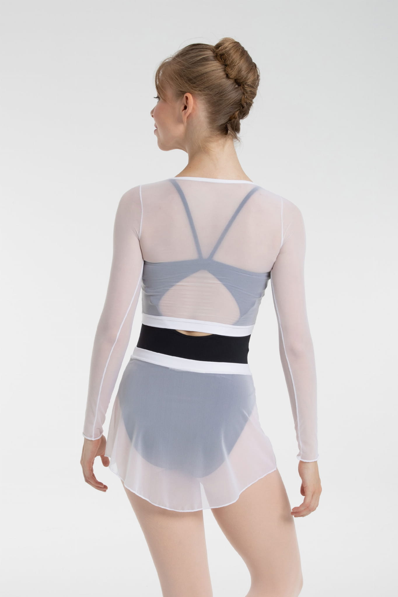 Top z siateczki z długim rękawem. Pasek pod biustem z tkaniny meryl. Możesz go nosić z body do tańca.