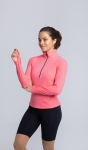 Bluzka z golfem i z długim rękawem dla łyżwiarek. Na dekolcie zamek błyskawiczny. Ozdobiona w przodzie kryształkami. Rękawy posiadają otwory na kciuki.