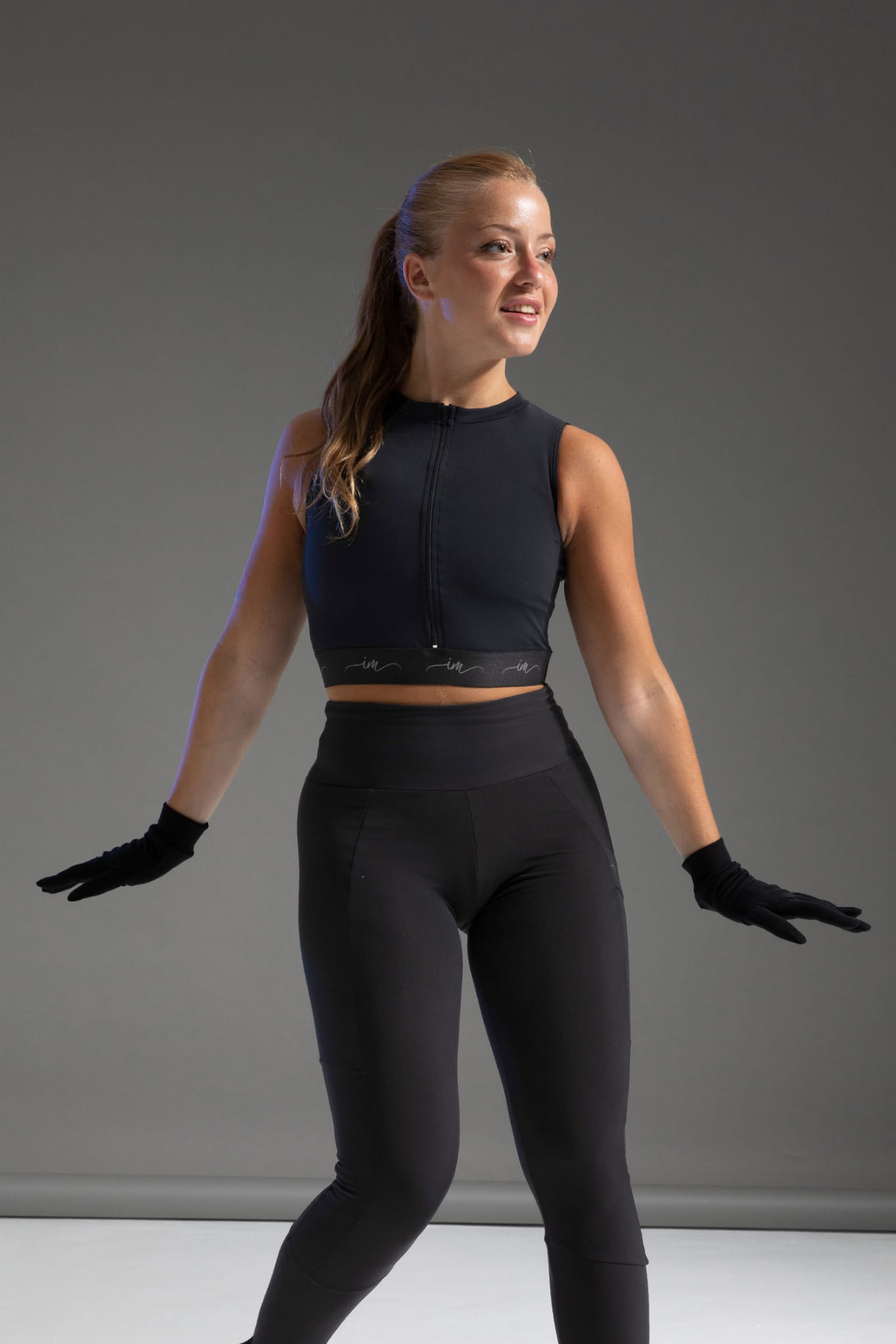 Krótka bluzka ocieplana bez rękawów. Zamek błyskawiczny z przodu. Elastyczna gumka z logo Intermezzo w pasie. Dostępne rozmiary dla dzieci i dorosłych.
