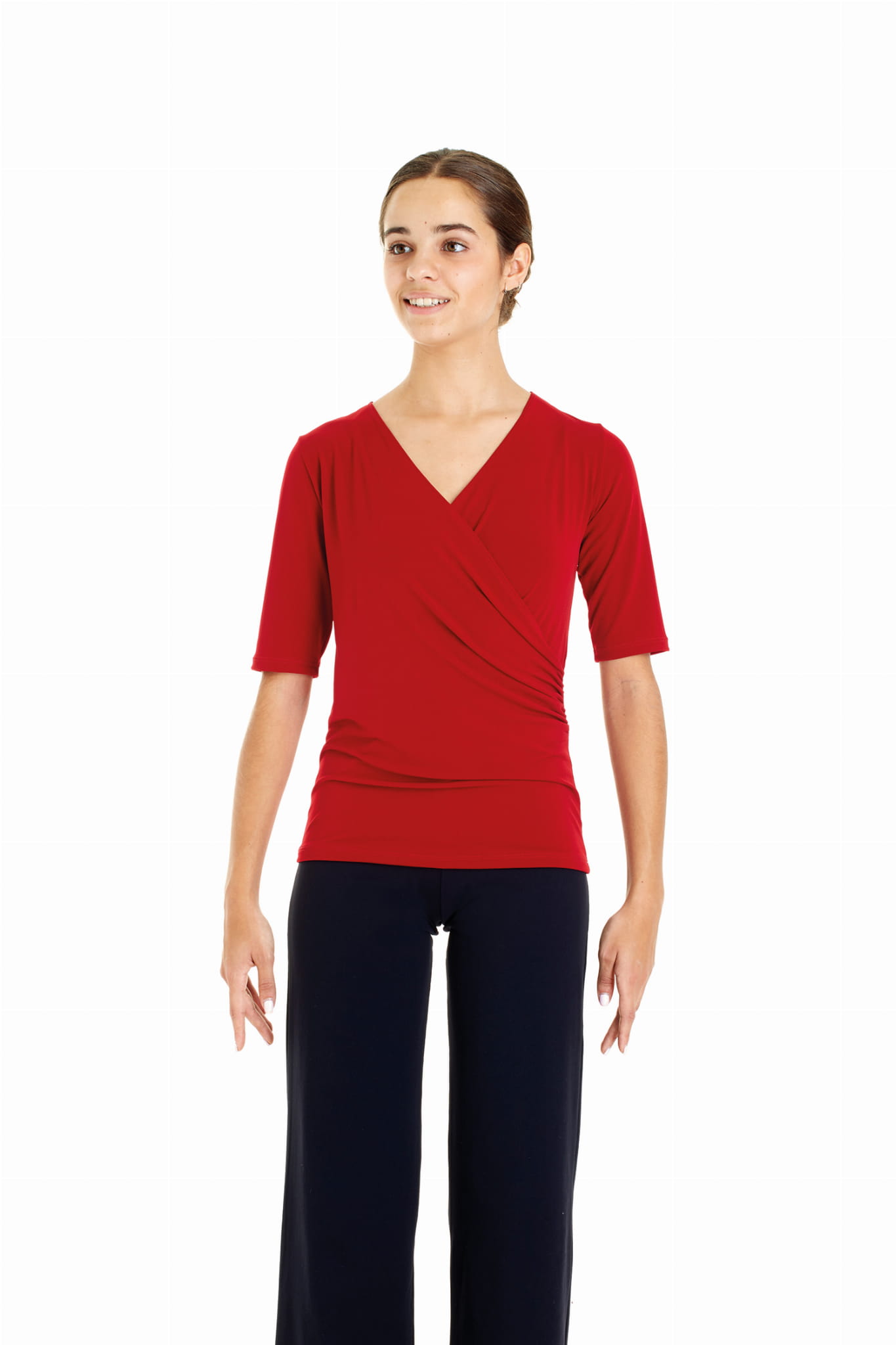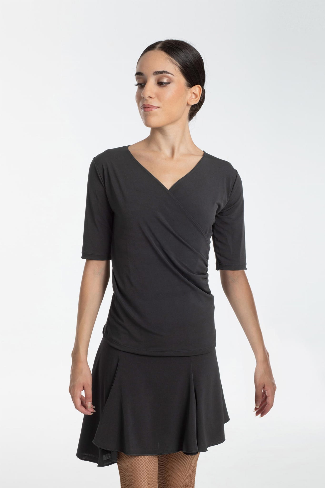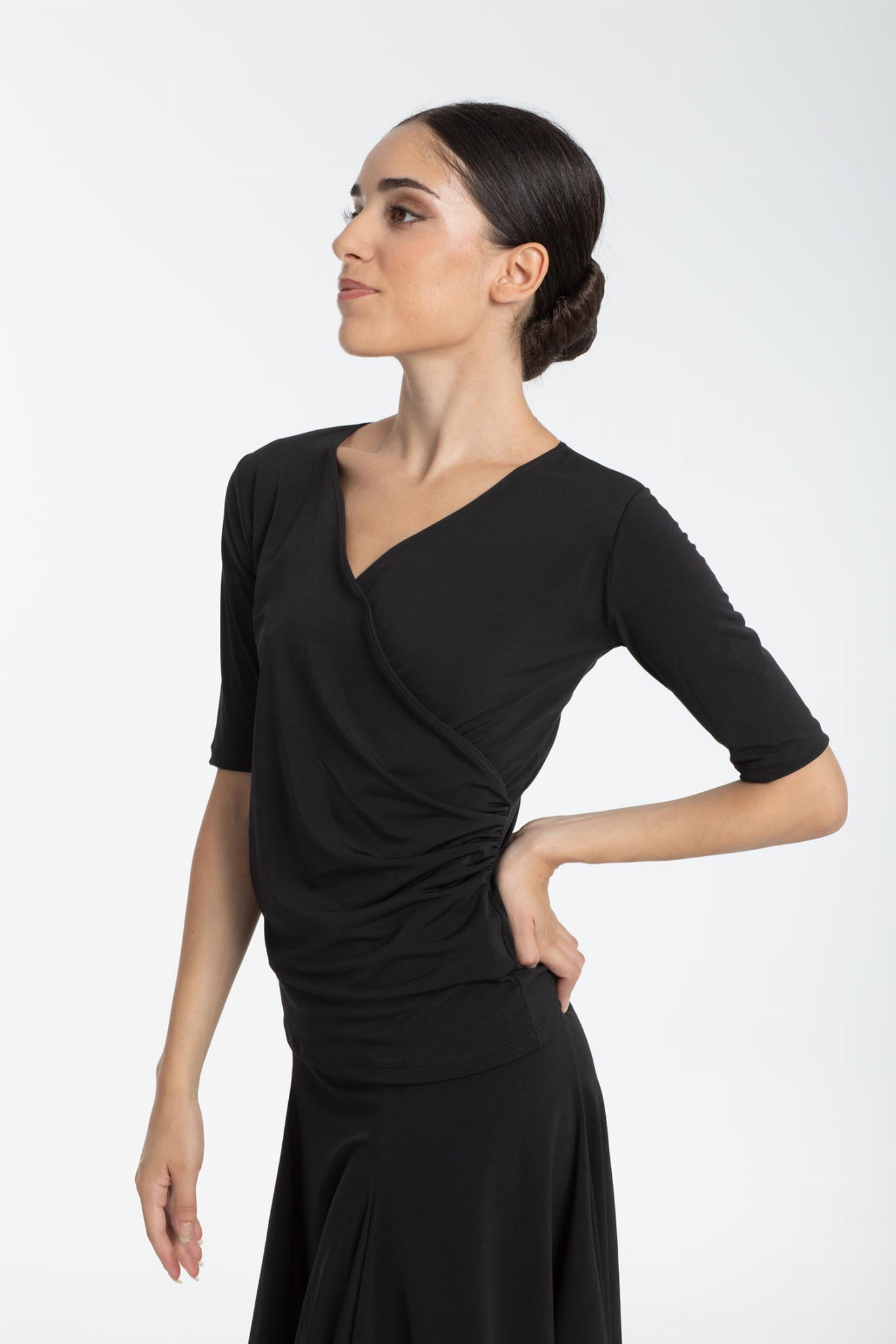 Bardzo wygodna, miękko otulająca sylwetkę, damska bluzka taneczna. Idealna na treningi tańca towarzyskiego zarówno dla profesjonalistów, jak i amatorów.