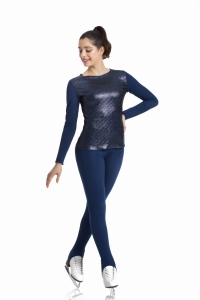 Bluzka z długim ocieplanym w środku rękawem. Przód oraz tyłu pokryty ozdobnym błyszczącym materiałem. Idealna na lodowisko.