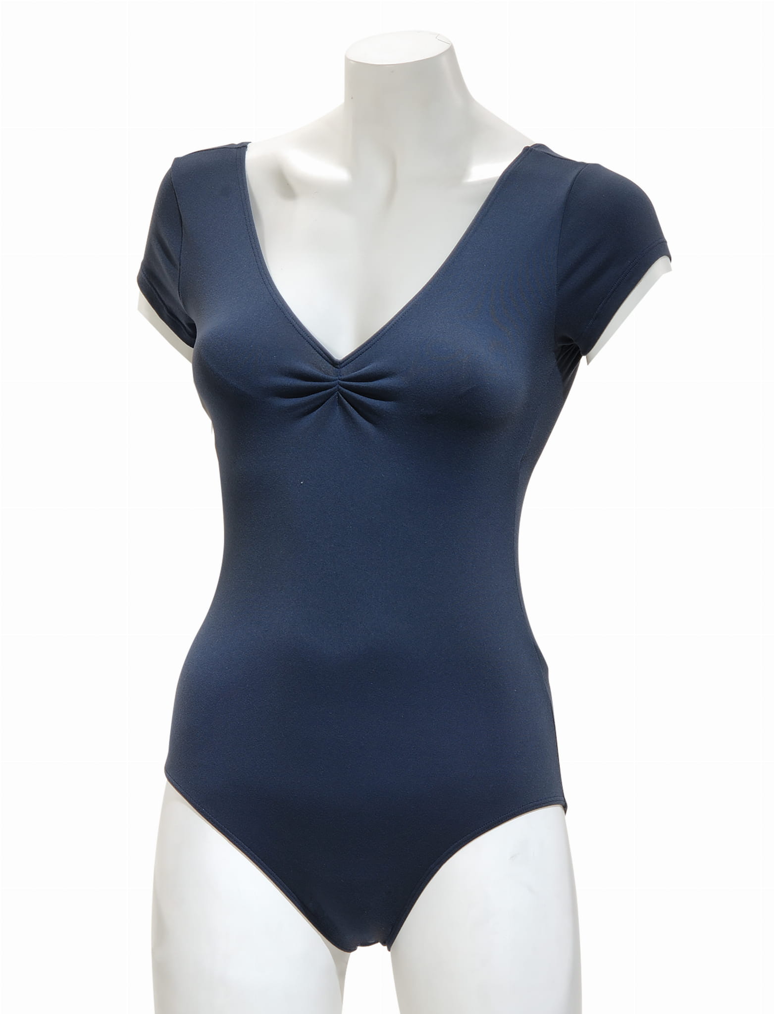 Body z rękawkiem i dekoltem w szpic wykończonym delikatnym marszczeniem. Na plecach głęboki dekolt zakończony delikatnym marszczeniem. Bardzo eleganckie i wygodne, pozwalające na dużą swobodę ruchów. Pięknie eksponuje plecy tancerki, a dekolt optycznie wydłuża szyję, idealnie przylega do ciała tancerki. Podszewka na całej długości z przodu. Model lubiany przez profesjonalistów. Wykonane z tkaniny meryl, miękkiej i przyjemnej w dotyku.