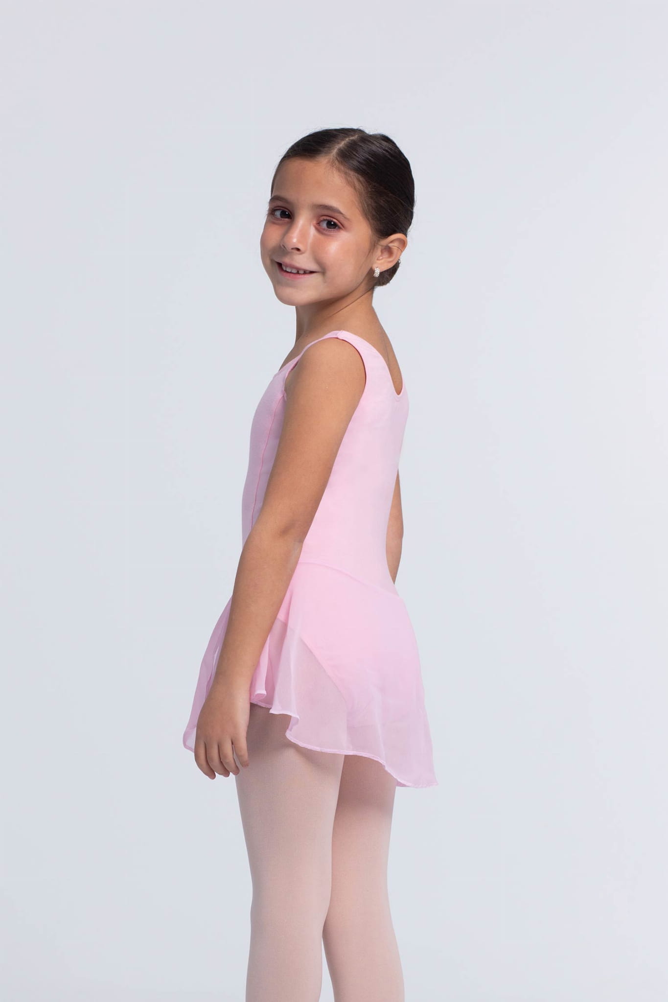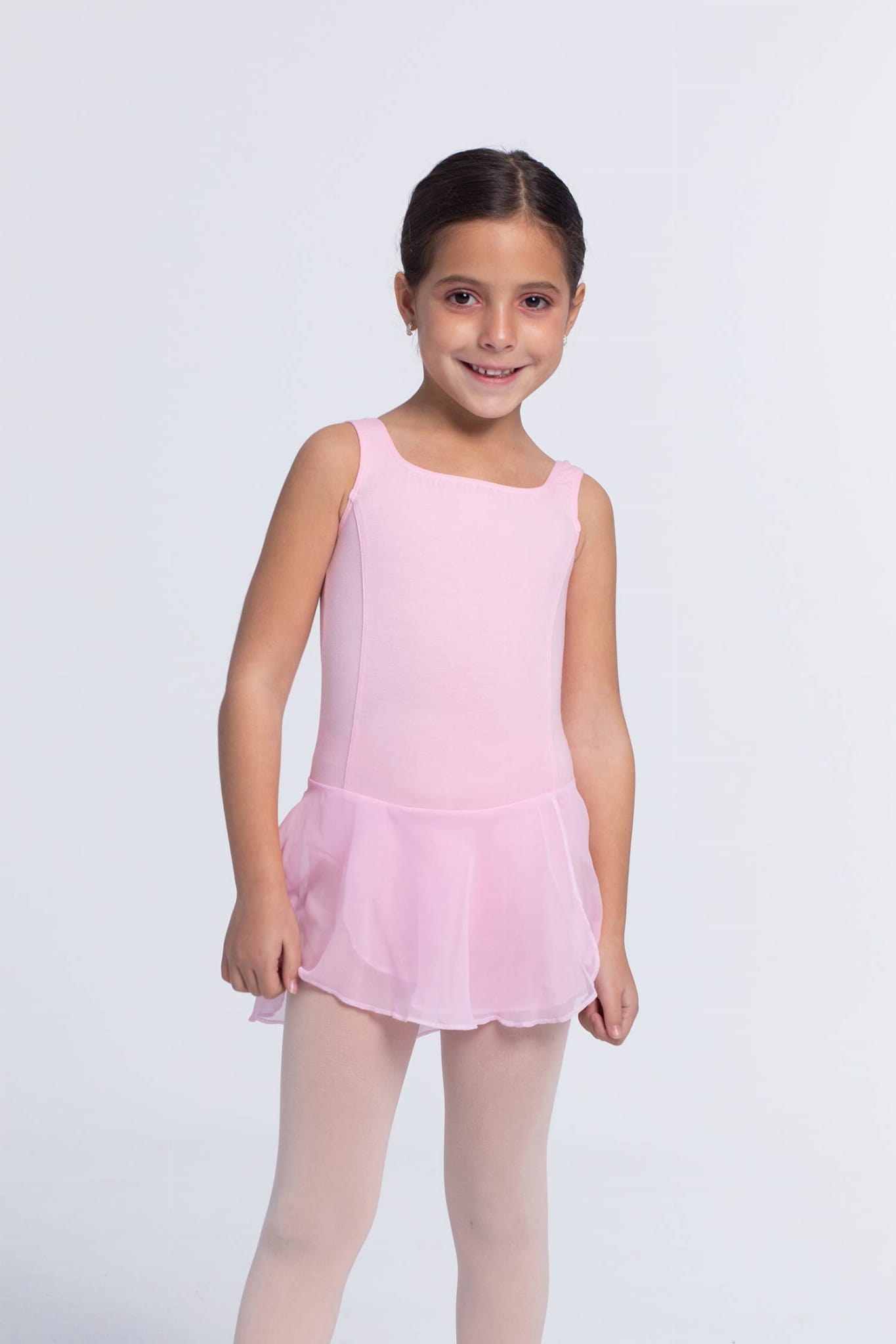 Body na szerokich ramiączkach z tuniczką. Body wykonane jest z bawełny i ma doszytą tuniczkę z szyfonu. Bardzo ładnie przylega do sylwetki młodej tancerki, dając jej komfort i dużą swobodę ruchów. Dostępny kolor jasno niebieski.
