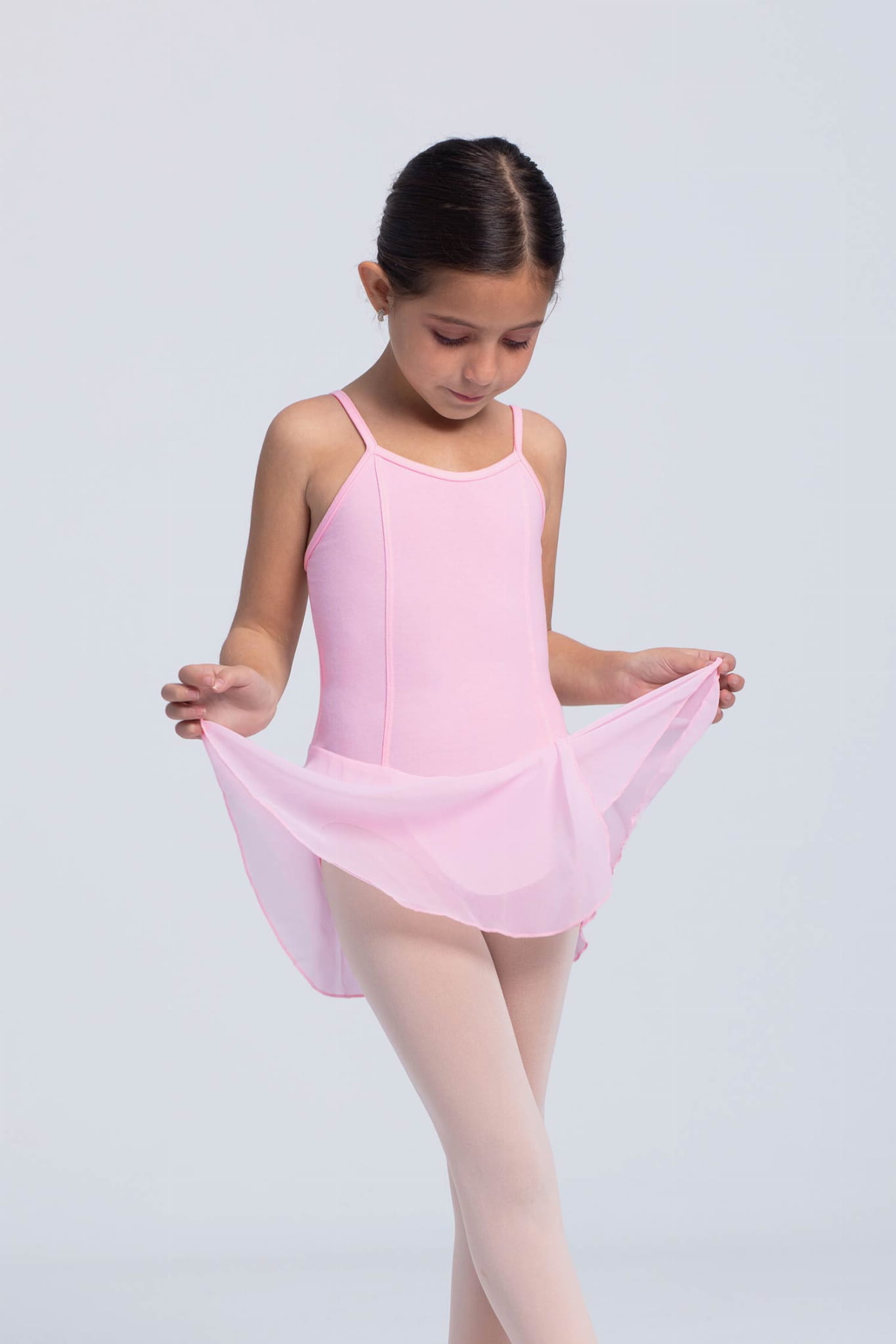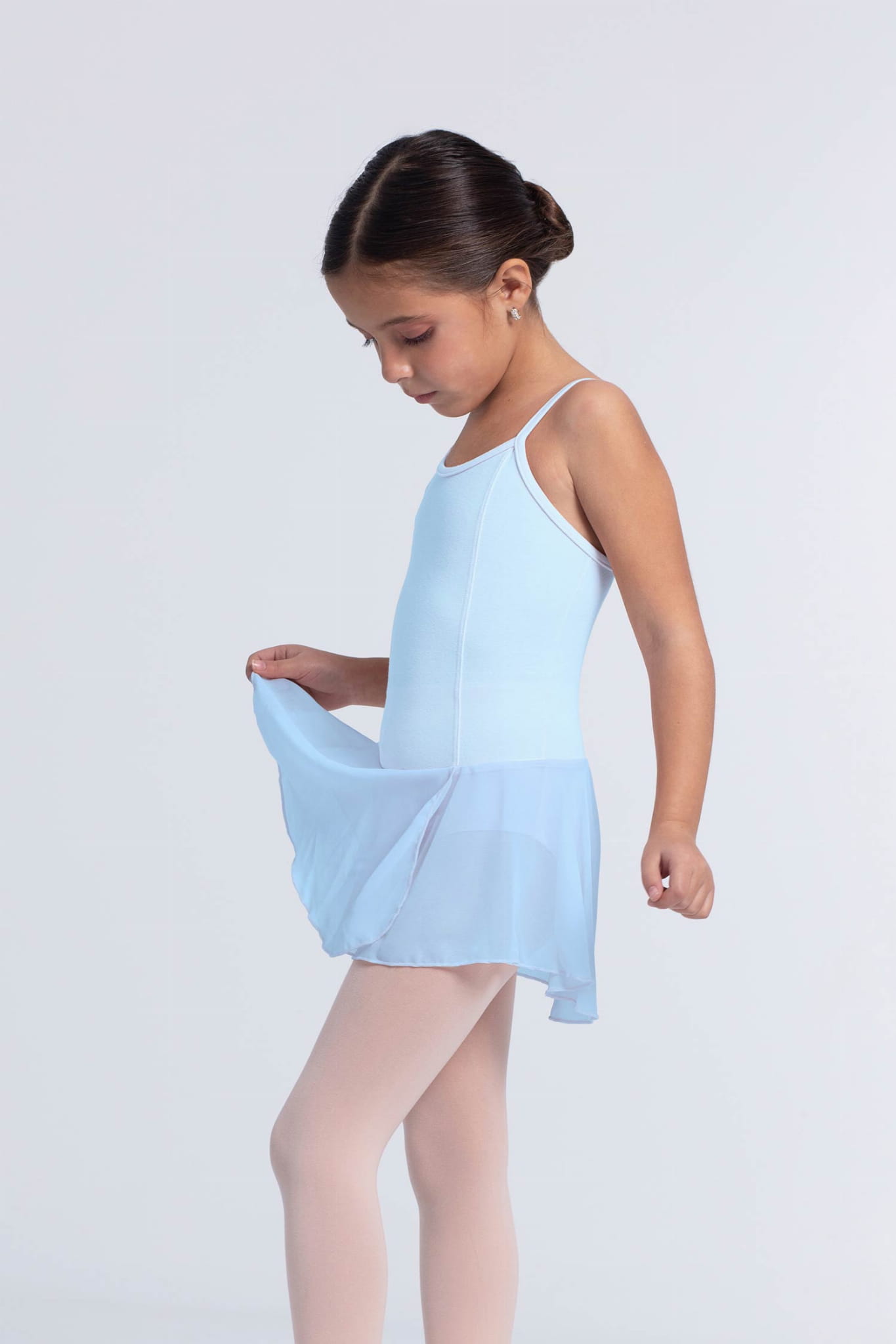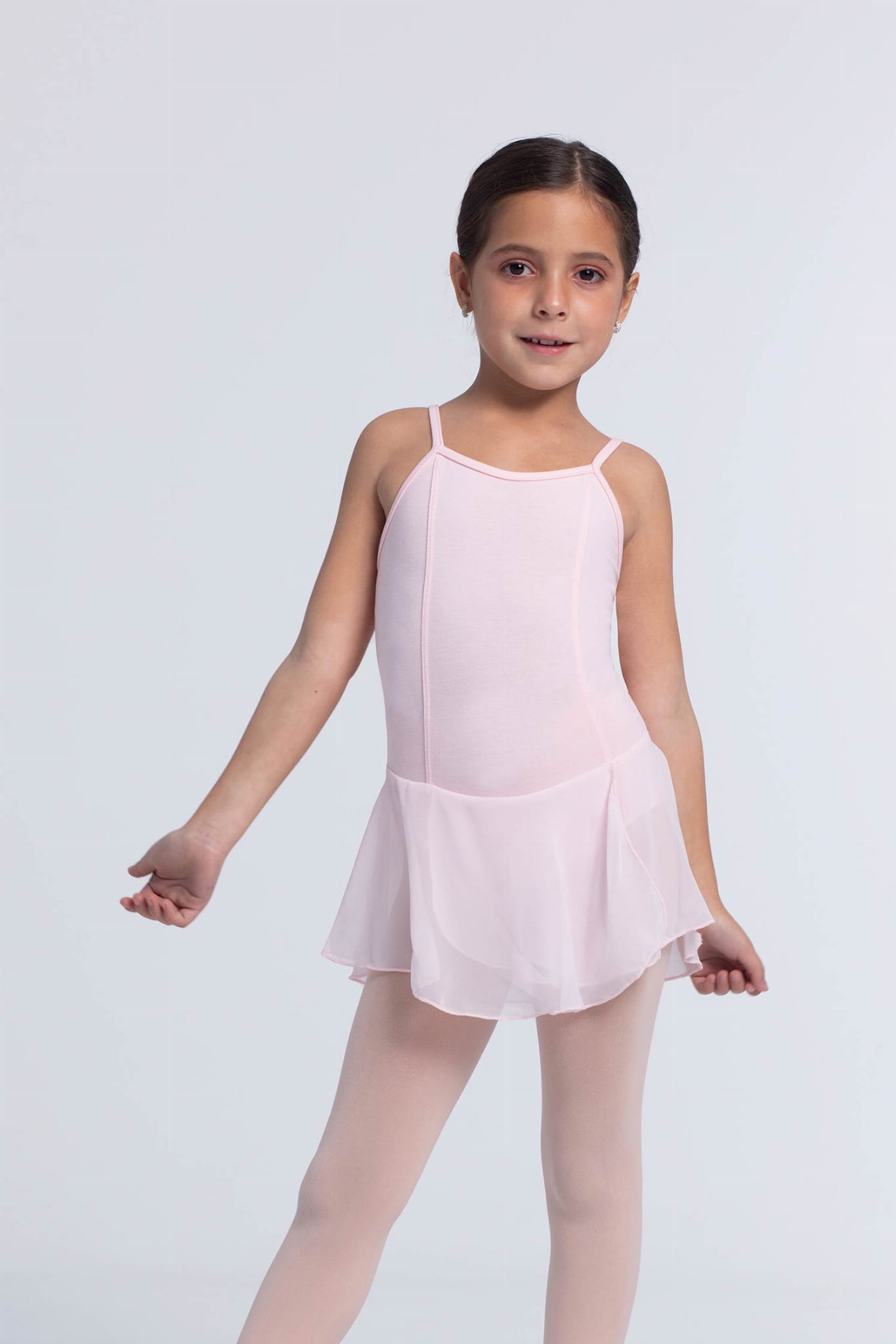 Body na cienkich ramiączkach z tuniczką. Body wykonane jest z bawełny, natomiast doszyta tuniczka jest z szyfonu. Bardzo ładnie przylega do sylwetki młodej tancerki, dając jej komfort i dużą swobodę ruchów. Dostępne w rozmiarach dla dzieci i dorosłych.