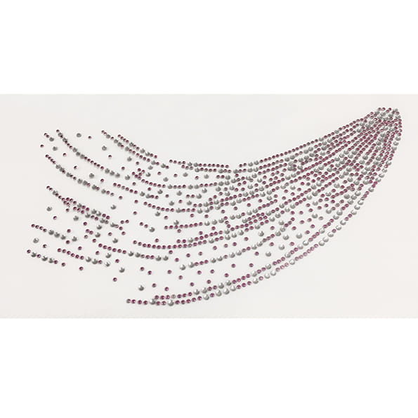 Błyszcząca dekoracja do stroju na zasadzie przyprasowania na gorąco. Może być wykorzystywana zarówno do przyozdobienia odzieży jak i paczek. Idealna do ozdoby strojów scenicznych, nadaje im niepowtarzalny i elegancki wygląd. Kolorystyka srebrno-różowa. Wymiar arkusza 23cm x 11cm.