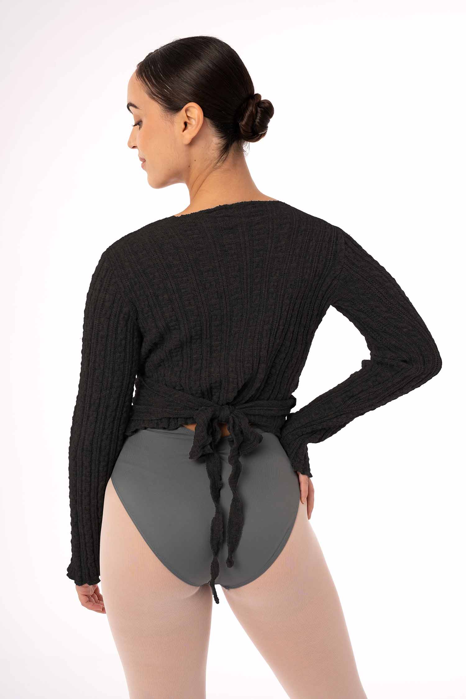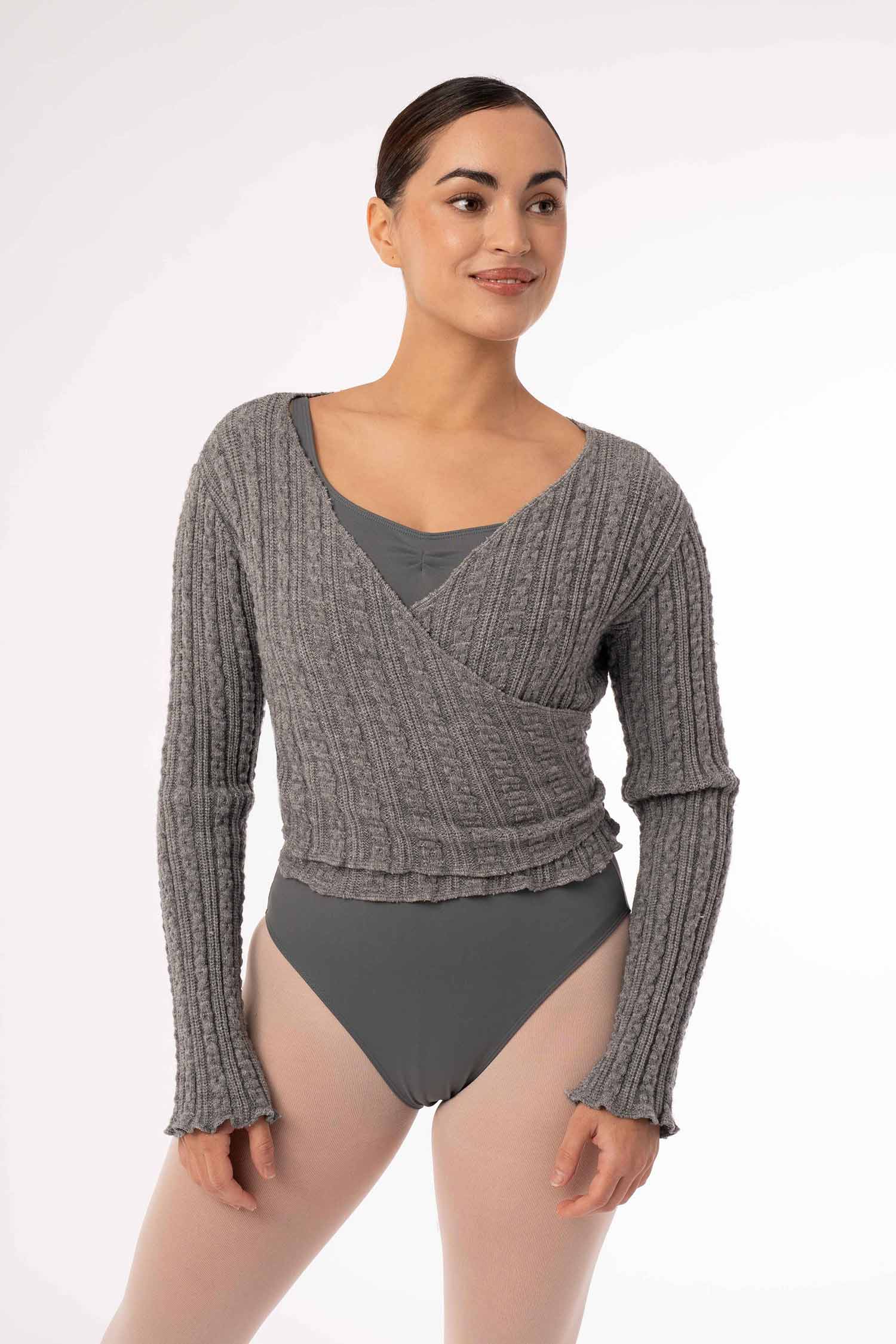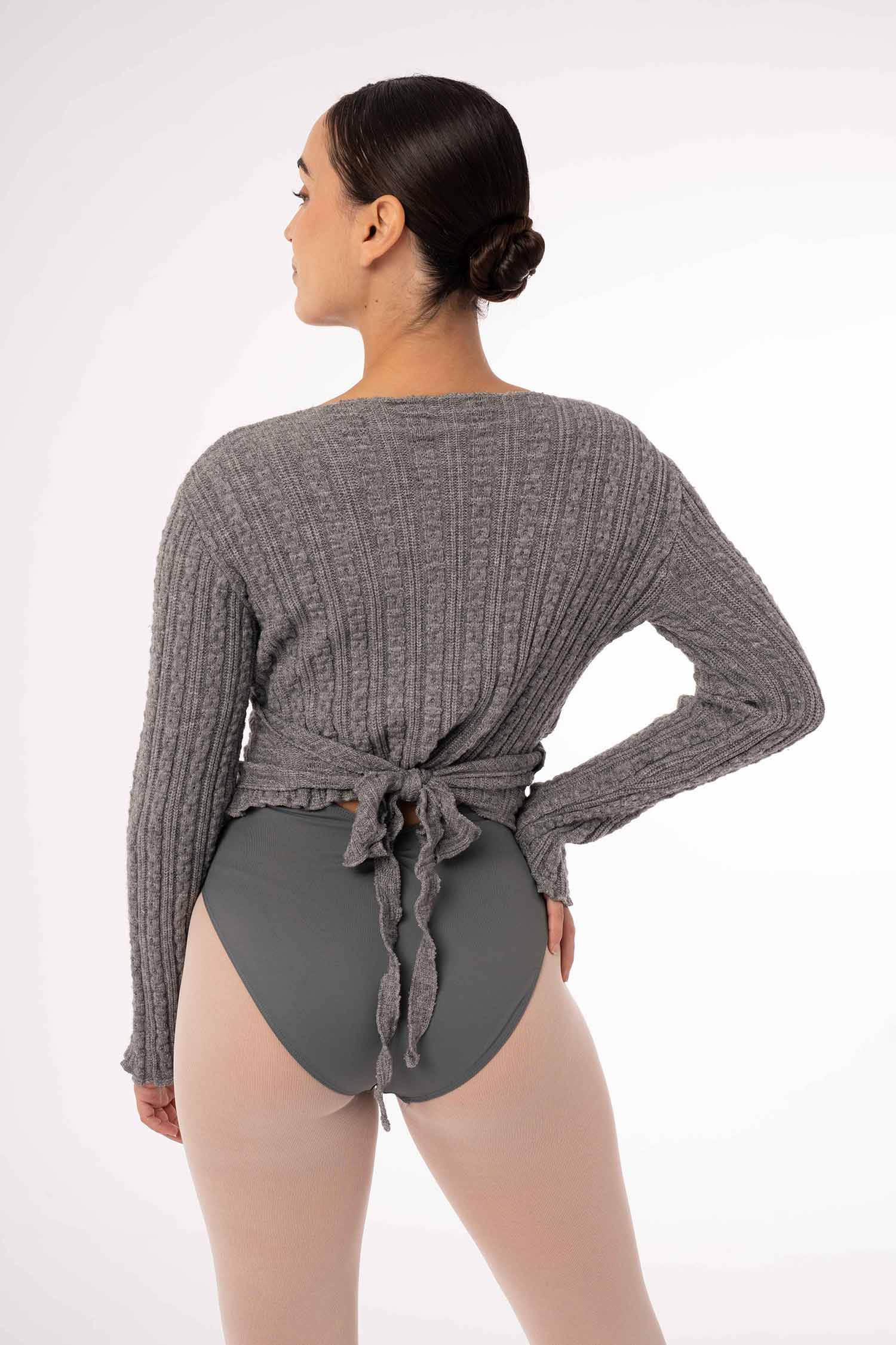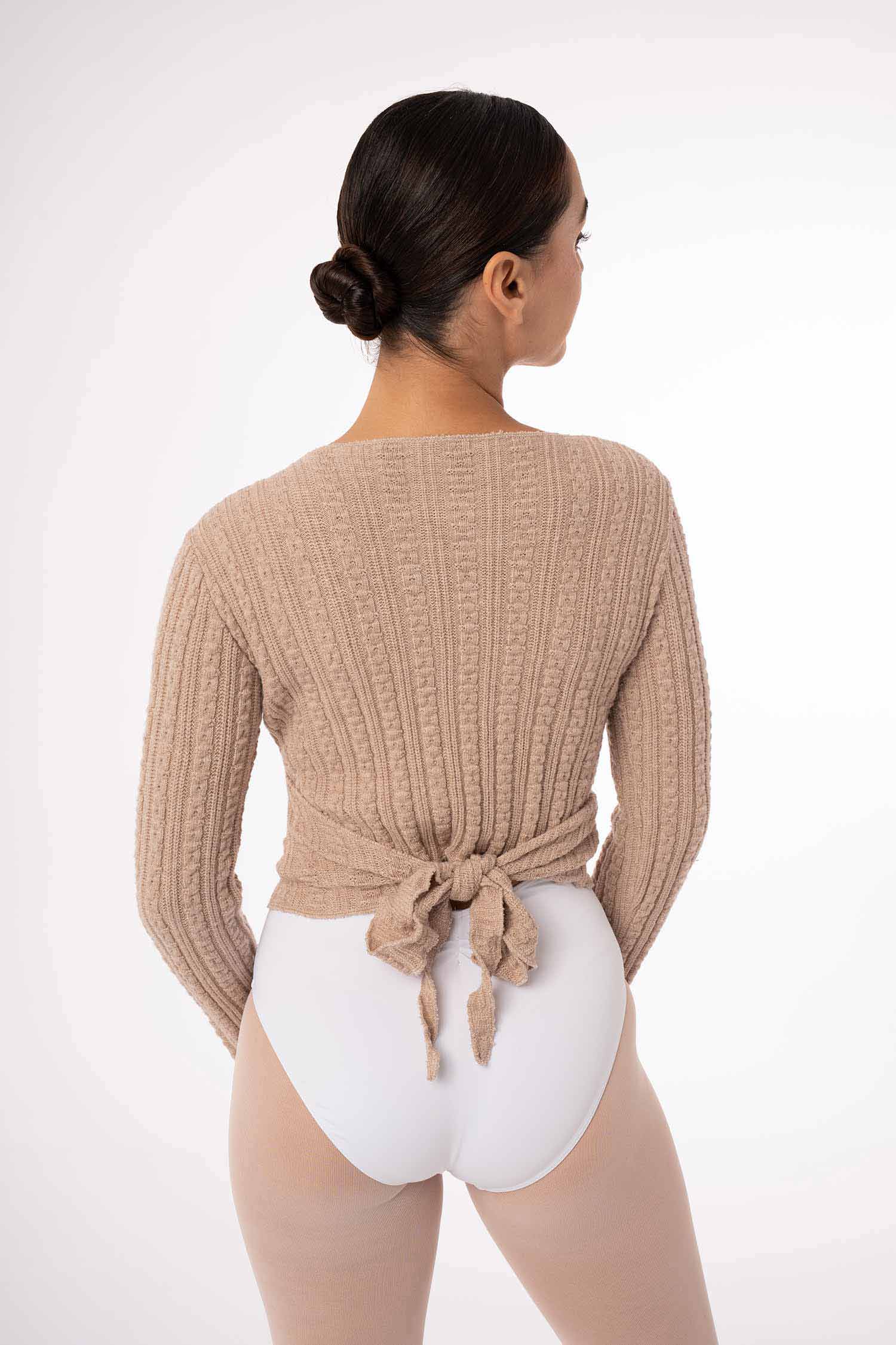 Wiązany sweterek taneczny wykonany z miękkiej, ciepłej i przyjemnej w dotyku dzianiny. Idealny ocieplacz dla tancerki jak również trenujących jogę czy inne dyscypliny. Pozwala na utrzymanie ciepłoty ciała przed treningiem, jak i w przerwach między kolejnymi zajęciami. Miękka i przyjemna w dotyku dzianina uprzyjemni każdą rozgrzewkę. Pozwala na pełną swobodę ruchów. Posiada otwory na kciuki. Dostępne rozmiary dla dzieci i dorosłych.