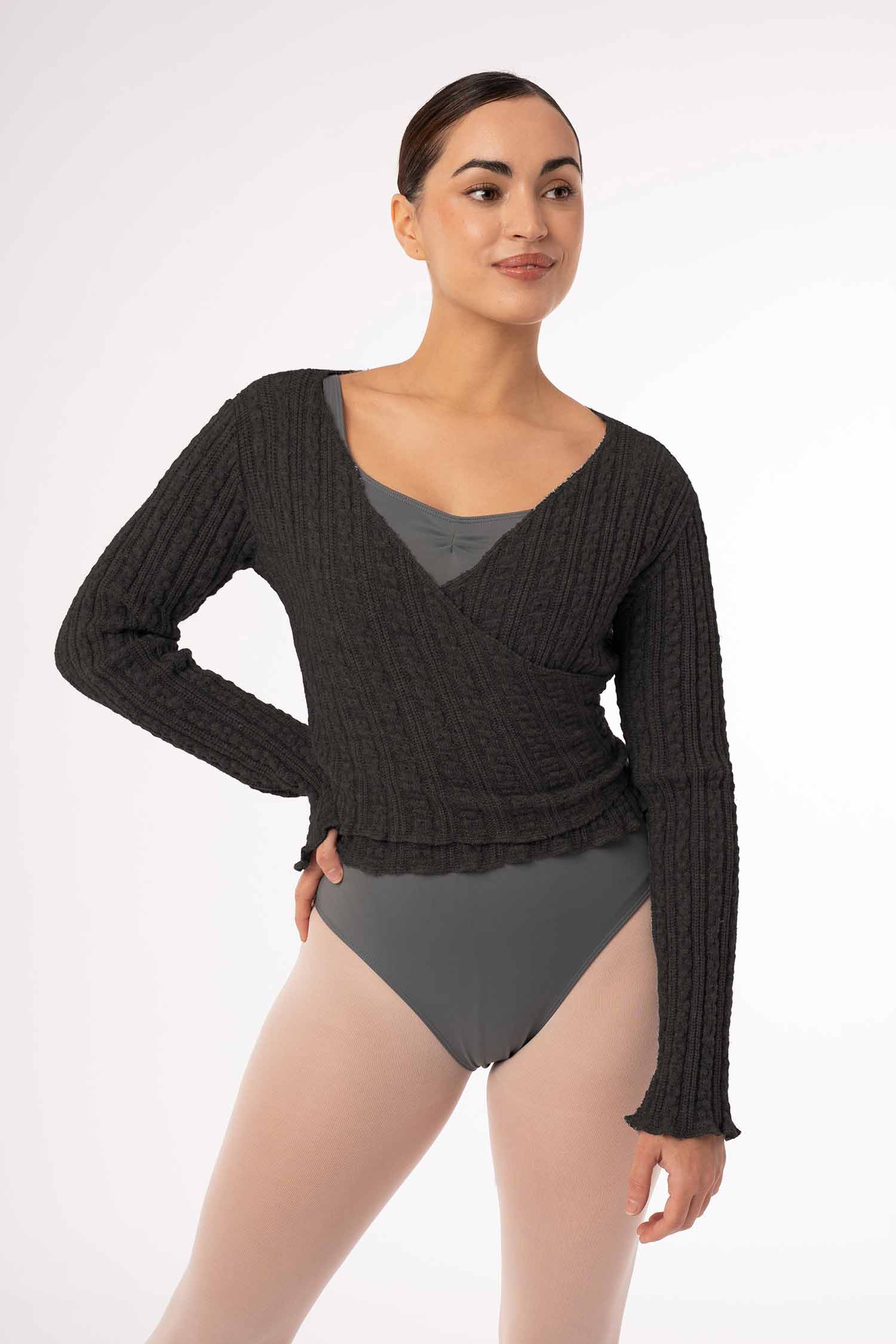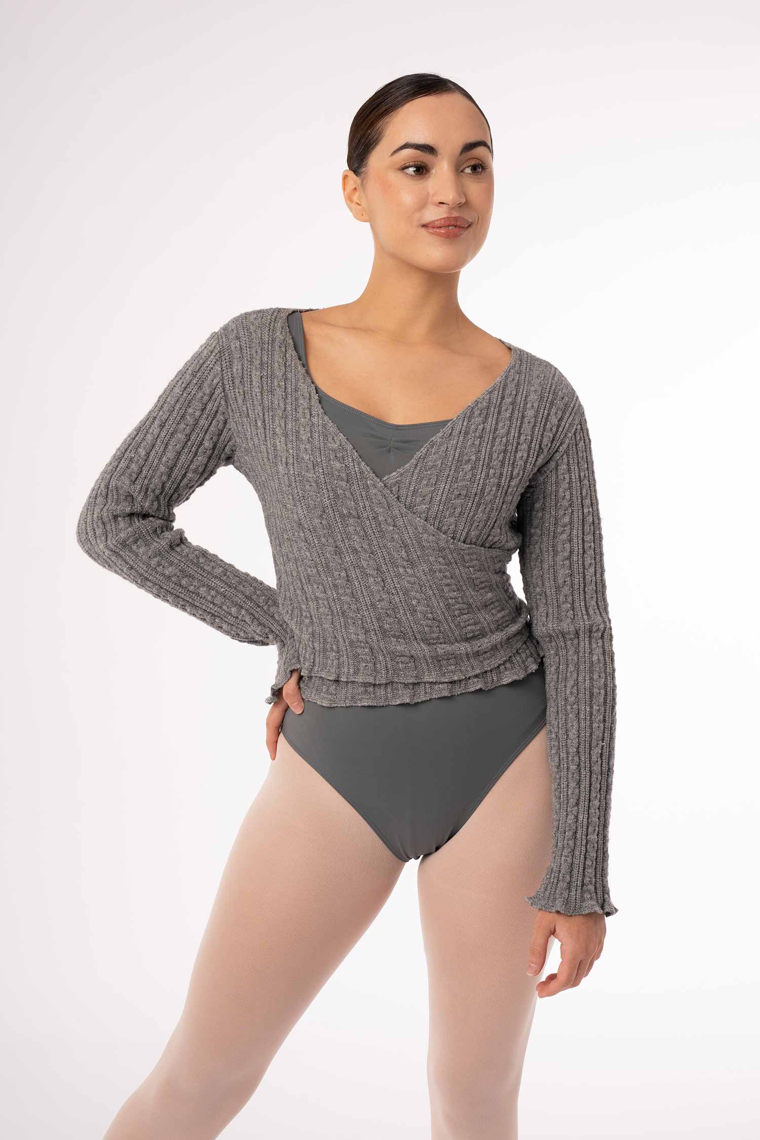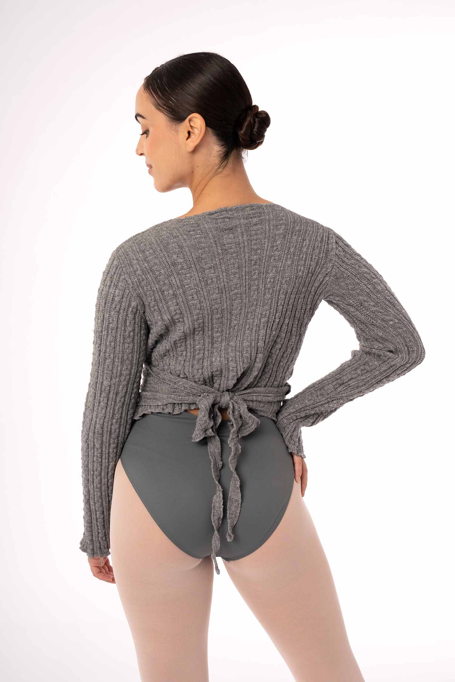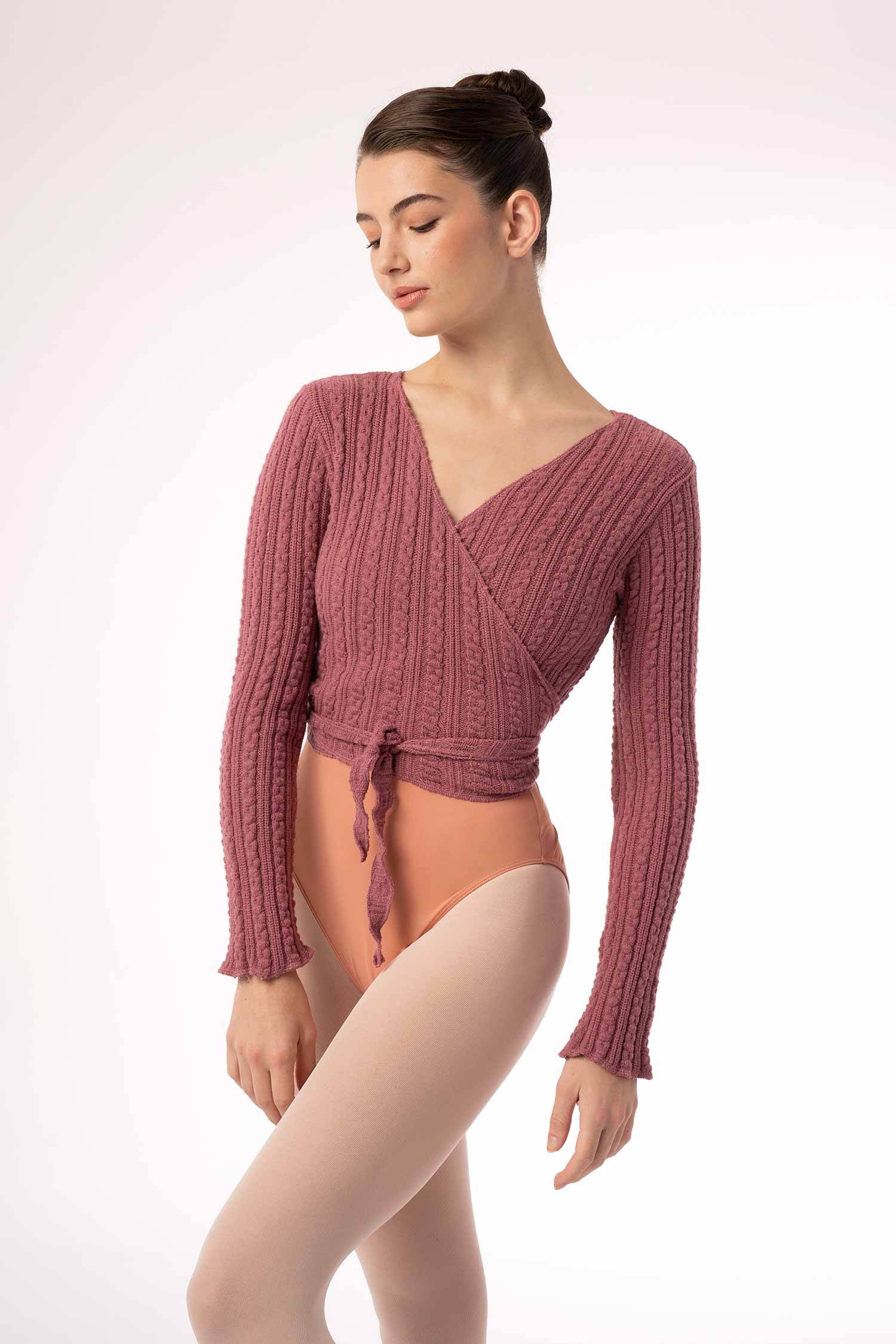 Wiązany sweterek taneczny wykonany z miękkiej, ciepłej i przyjemnej w dotyku dzianiny. Idealny ocieplacz dla tancerki jak również trenujących jogę czy inne dyscypliny. Pozwala na utrzymanie ciepłoty ciała przed treningiem, jak i w przerwach między kolejnymi zajęciami. Miękka i przyjemna w dotyku dzianina uprzyjemni każdą rozgrzewkę. Pozwala na pełną swobodę ruchów. Posiada otwory na kciuki. Dostępne rozmiary dla dzieci i dorosłych.