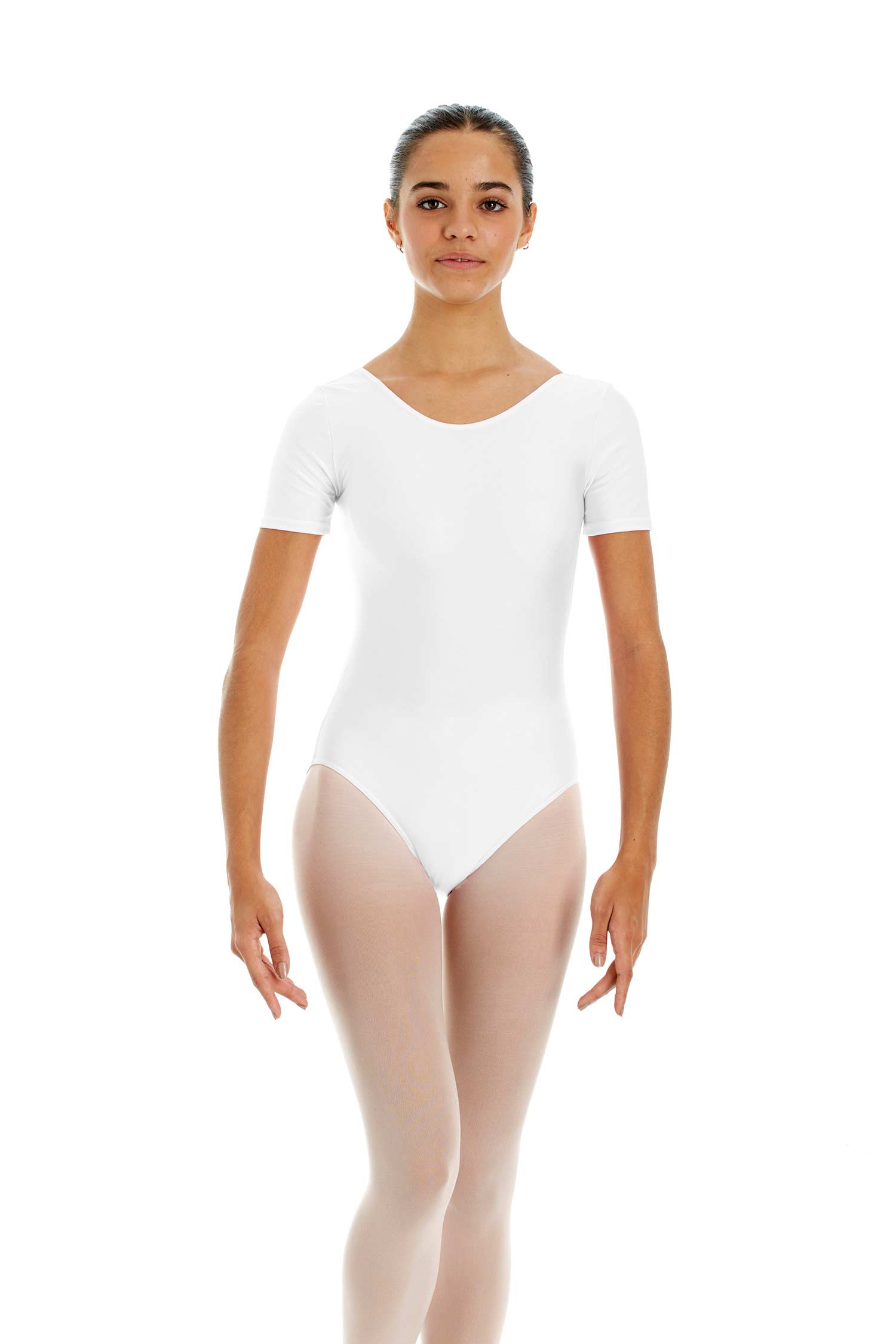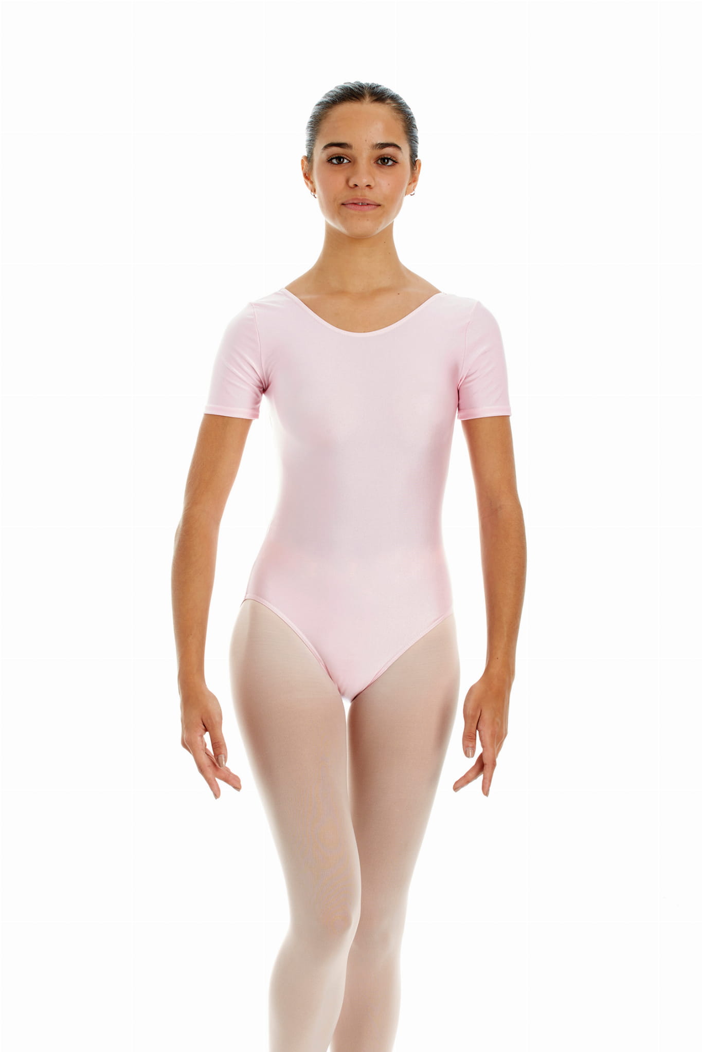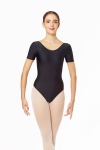 Body z krótkim rękawem z błyszczącej lycry. Wygodne do ćwiczeń zarówno baletowych, jak i rytmiki. Dostępne rozmiary dla dzieci i dorosłych.