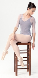 Koszulka z prześwitującej siateczki z rękawem 3/4. Możesz ją nosić z body do tańca.