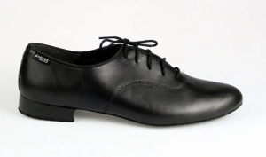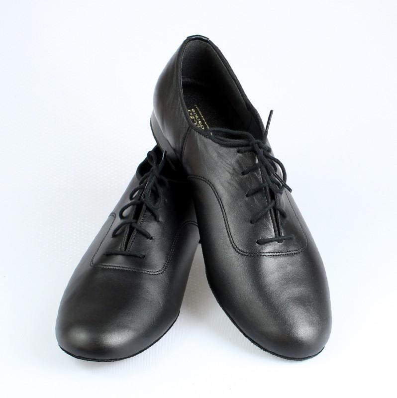 Męskie buty taneczne wykonane z czarnej skóry bydlęcej. Rodzaj skóry zewnętrznej jest bardzo wysokiej jakości, co pozwala na długotrwałe ich użytkowanie. Podeszwa welurowa nadaje plastyczności ruchu, do użytku wewnętrznego. Model nadaje się do: tańców standardowych, wszystkich form tańca rekreacyjnego, eleganckie obuwie do przebrania na imprezy okolicznościowe, gry na organach.