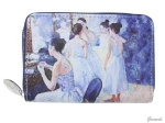 Portfel ze sztucznej skóry, ozdobiony reprodukcjami obrazów baletnic. Zamykany na zamek błyskawiczny. Wewnątrz kilka przegródek na banknoty, karty czy dokumenty. Idealny prezent dla miłośniczki baletu.
