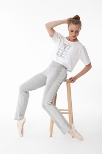 Spodnie dresowe damskie. Wygodne, szerokie, idealne na rozgrzewkę, zajęcia itp. Z ozdobnym paskiem po bokach nogawek.