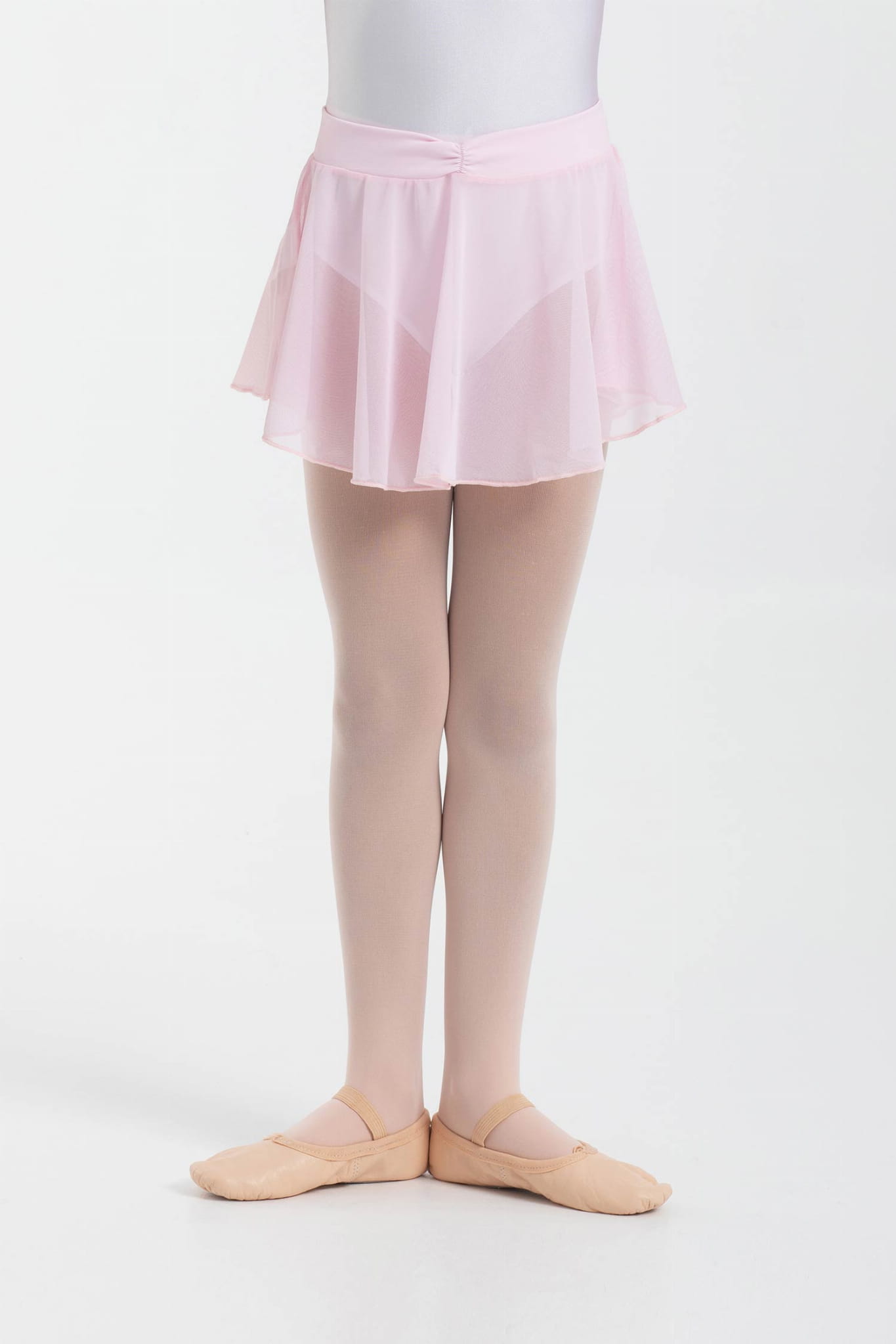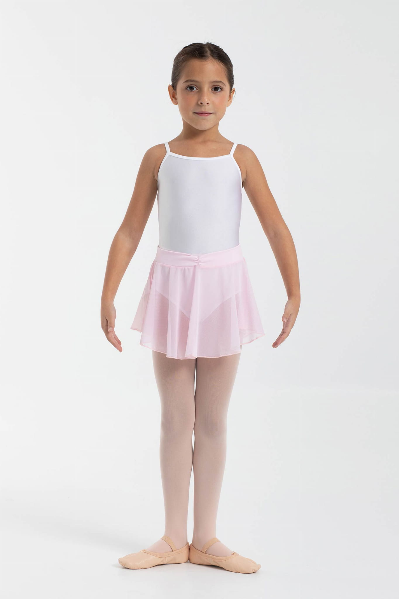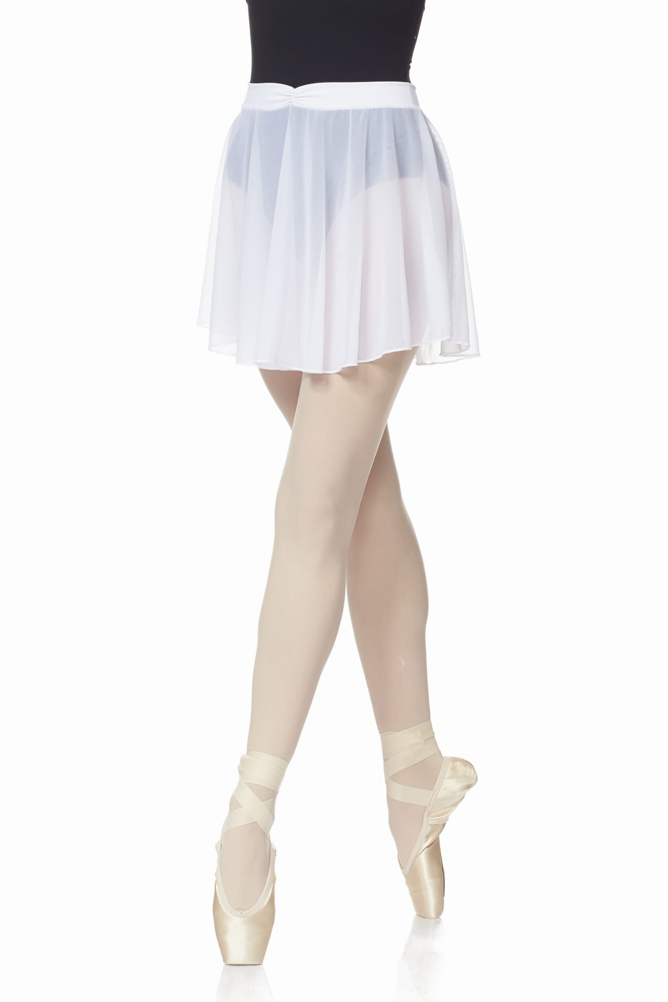 Tunika z elastycznej siateczki. Pas jest wykonany z elastycznej tkaniny Meryl z lekkim marszczeniem z przodu. Nie posiada wiązania co stanowi duży komfort podczas zakładania i zdejmowania przy jednoczesnym każdorazowym równomiernym ułożeniu na sylwetce tancerki.