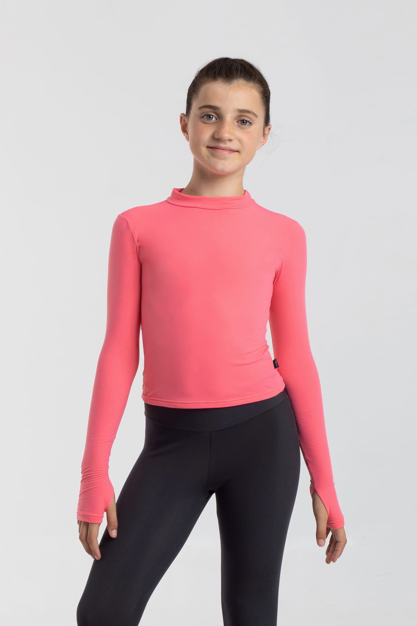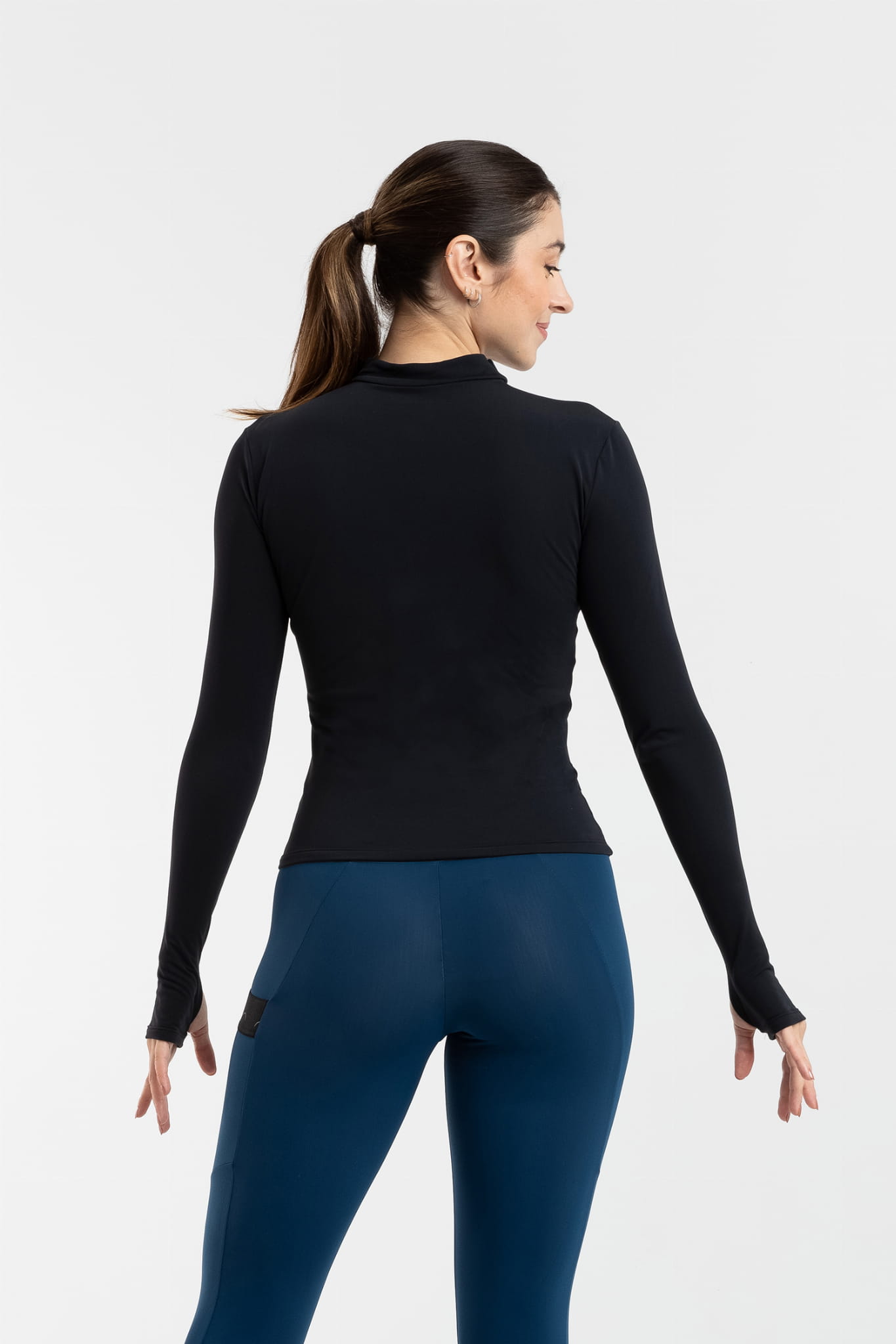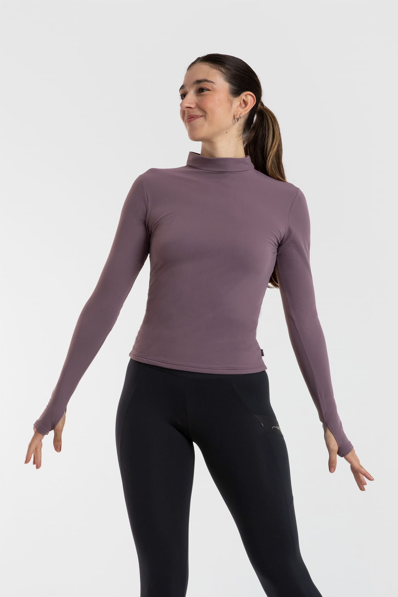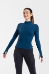Cintia to dopasowana bluza z długim rękawem i golfem. Wewnątrz szczotkowana tkanina (tzw. miś), dająca lekkie ocieplenie. Na końcach rękawów otwory na kciuk, dzięki czemu rękawy nie zsuwają się podczas ćwiczeń.