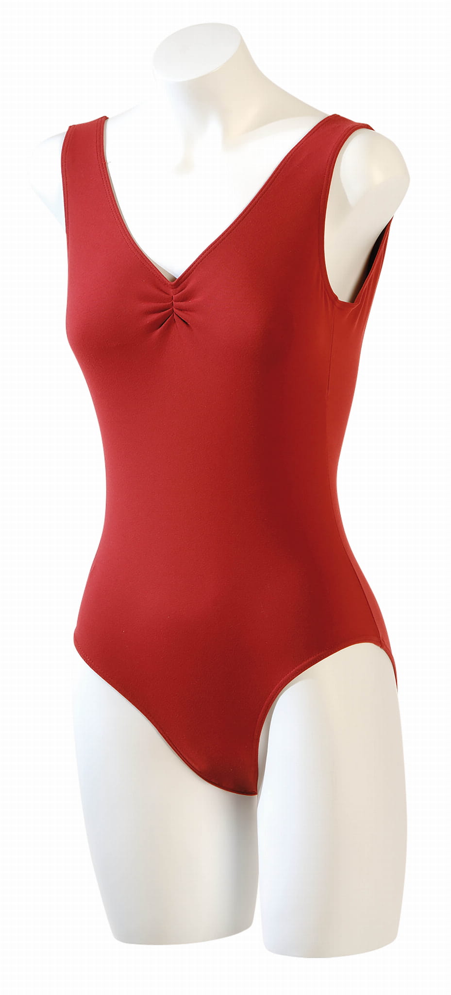 Klasyczne body baletowe (taneczne) na szerokich ramiączkach w kolorze burgundowym. Zarówno z przodu jak i z tyłu marszczenie przy dekolcie, dzięki czemu kostium wygląda elegancko, efektownie prezentując sylwetkę tancerki. Dostępne rozmiary dla dzieci i dorosłych.