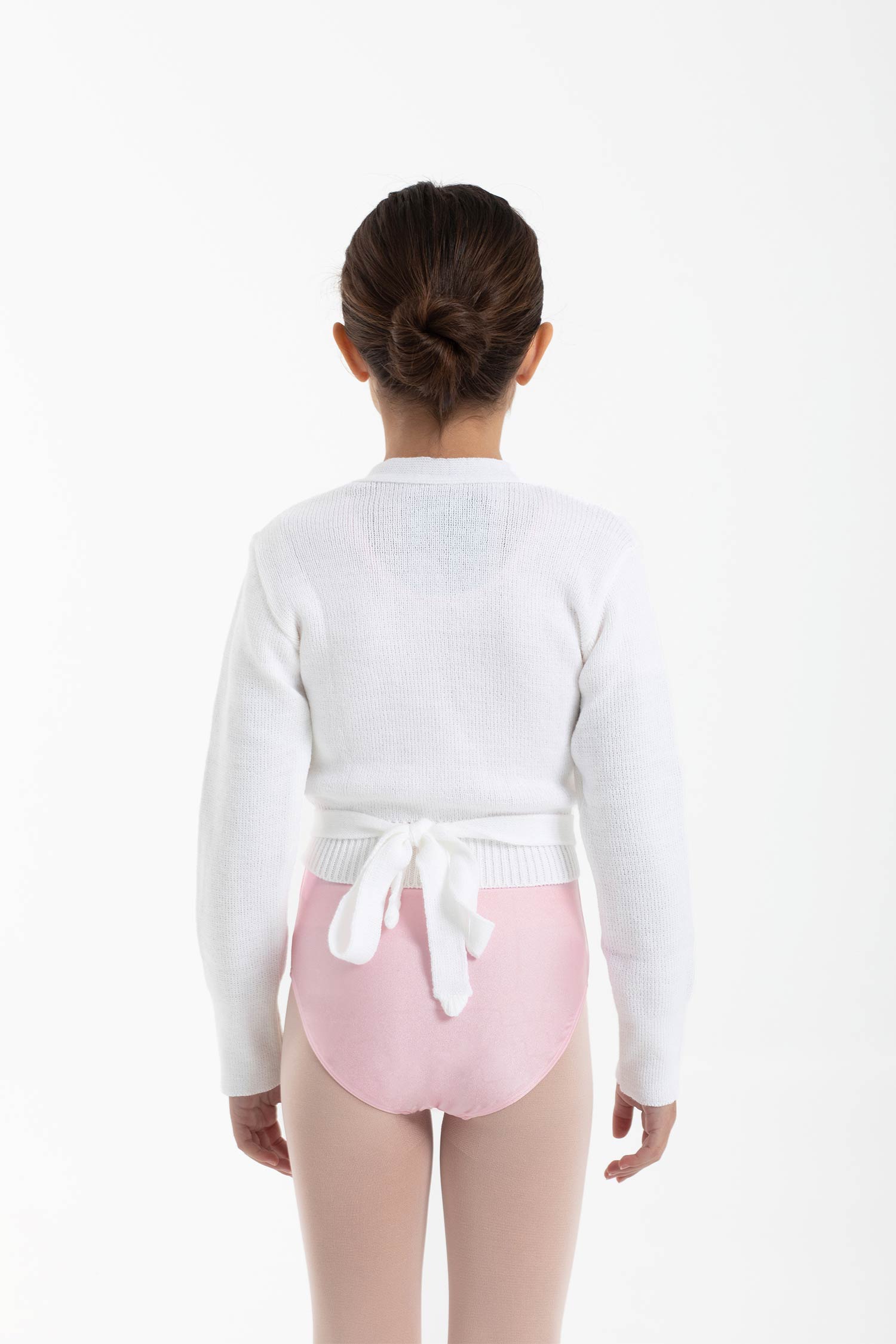 Niezbędnik każdej baletnicy. Cieplutki sweterek baletowy wiązany na zakładkę. Swobodnie dopasowujący się do ciała uczennicy(tancerki) dając jej komfort podczas ćwiczeń. Miły i przyjemny w dotyku. Bardzo ładnie prezentuje się z zestawie z długimi bądź krótkimi getrami (np. model 2010 lub 2020) . Niezbędny nie tylko na jesienne chłody. Dostępne rozmiary dla dzieci i dorosłych.