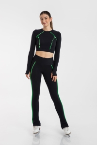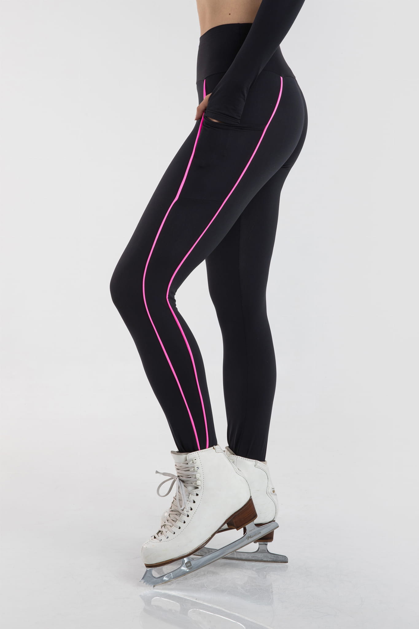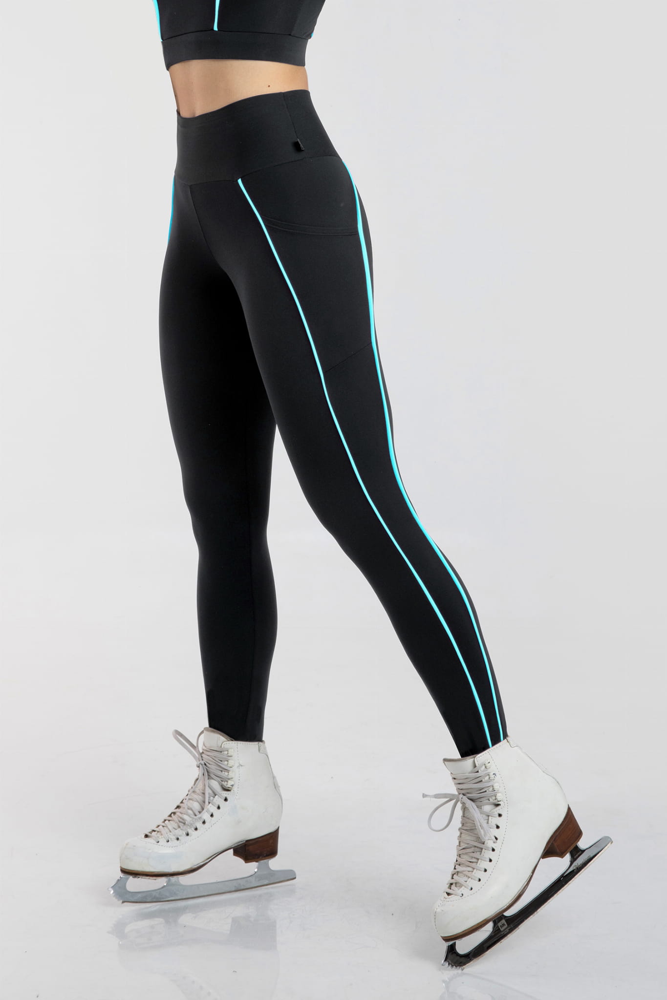 Łyżwiarskie legginsy Clover z szerokim pasem i wysokim stanem oraz boczną kieszenią. Ozdobione kolorową lamówką wzdłuż bocznych części nogawek. Wewnątrz szczotkowana tkanina (tzw. miś).